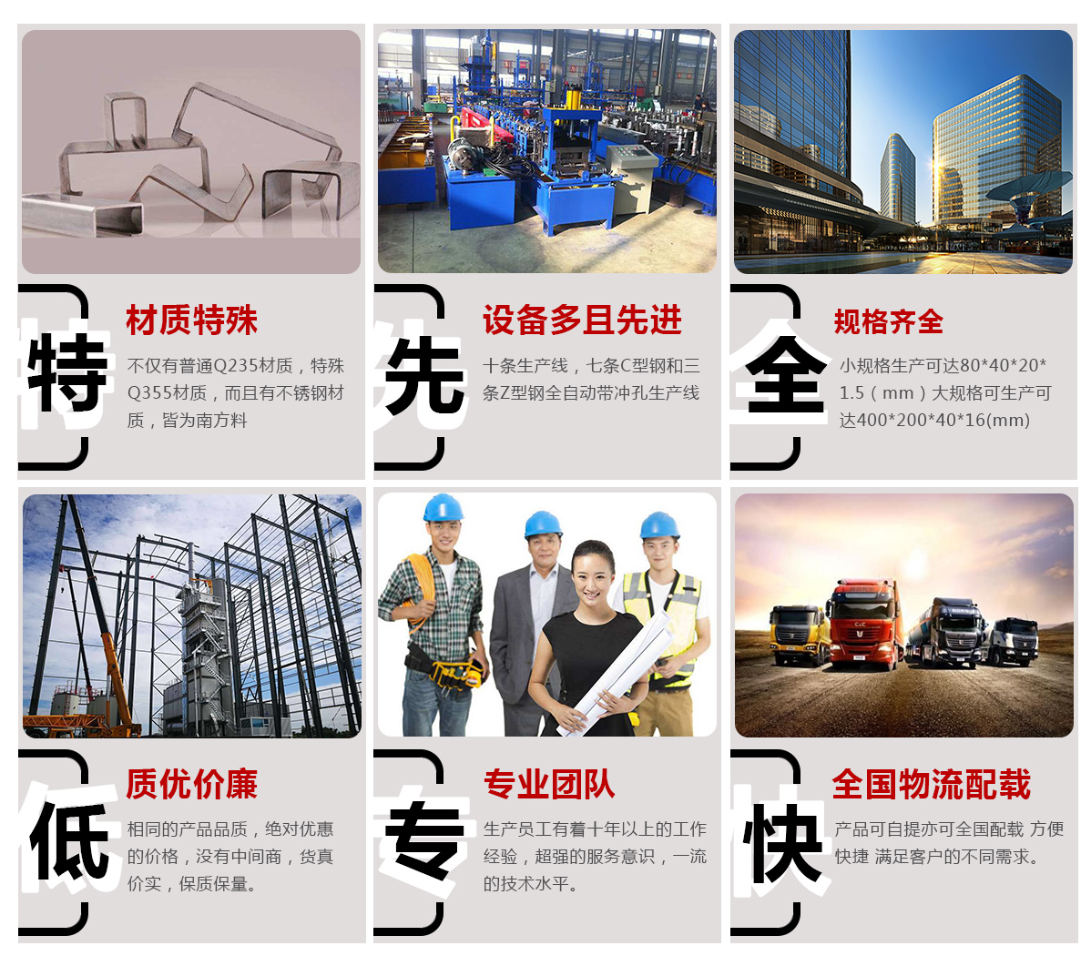 更新時(shí)間:2020-5-9更多>>在制作冷彎C型鋼的時(shí)候主要是在低溫條件下完成加工操作的,鋼材也因此而得名。這種鋼材屬于輕薄型產(chǎn)品,鋼材的自重比較小,...